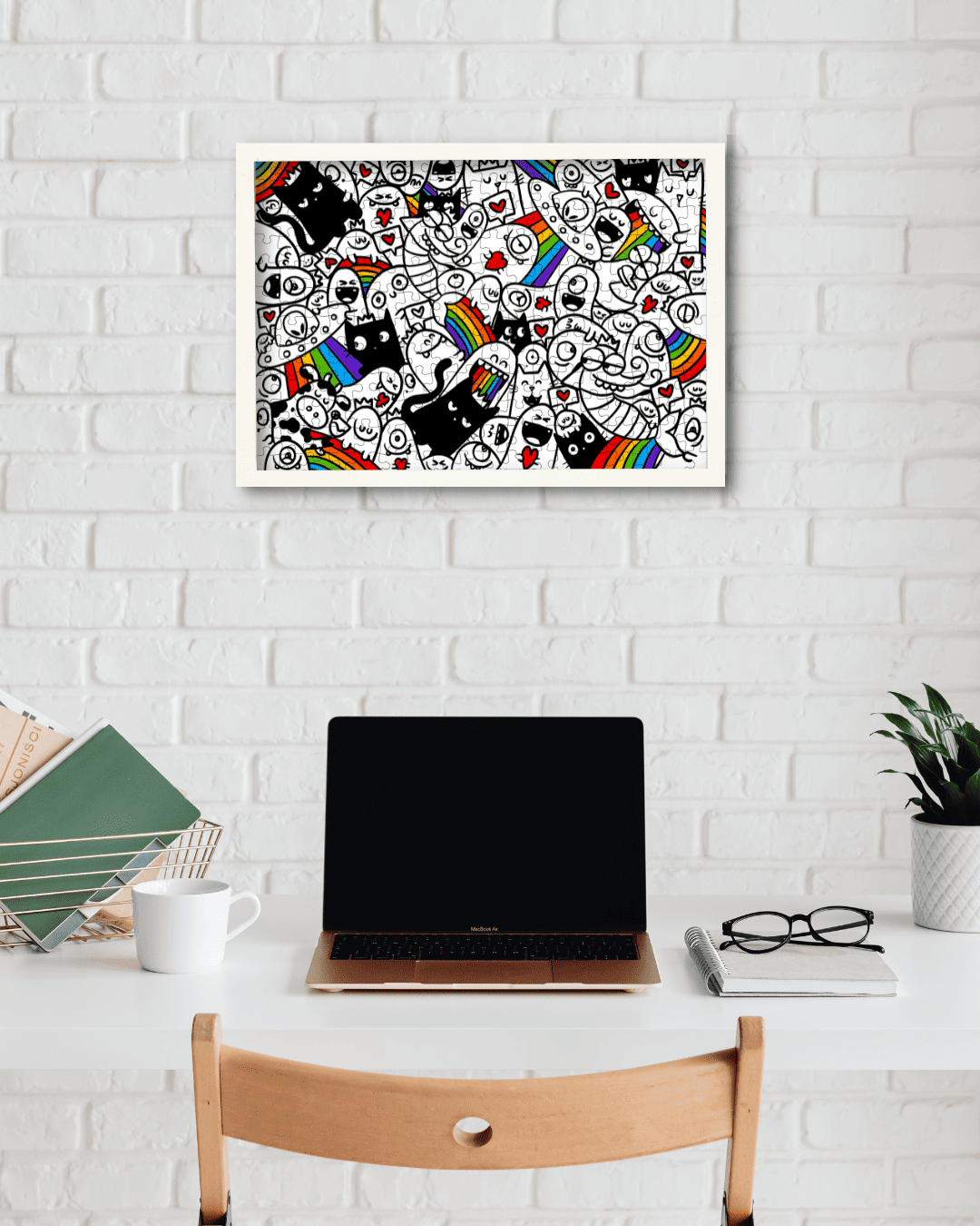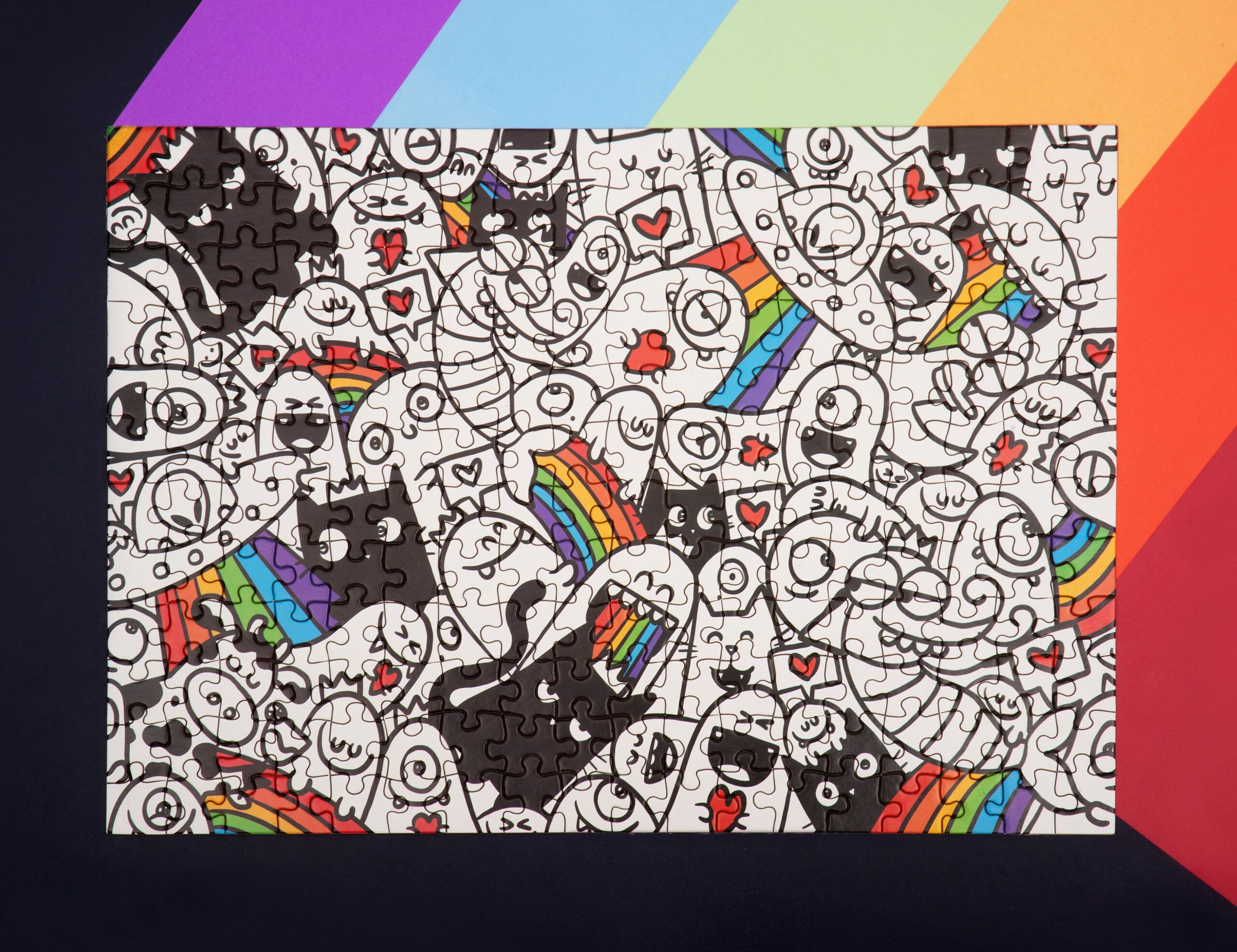 O Doodles Arco-Íris é um quebra-cabeça que transborda alegria, imaginação e criatividade. Criado pela artista e produtora cultural Ana Carolina Iannaccone, esse puzzle de 216 peças é uma verdadeira explosão de personagens fofos, corações, gatos, alienígenas e arco-íris — tudo em estilo doodle art, que convida o olhar a explorar cada detalhe com leveza e diversão.